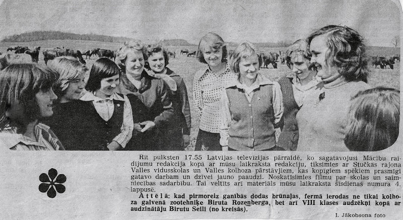 Mūsu 8. klase govju dzīšanā ganībās 1978. gads