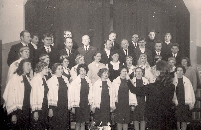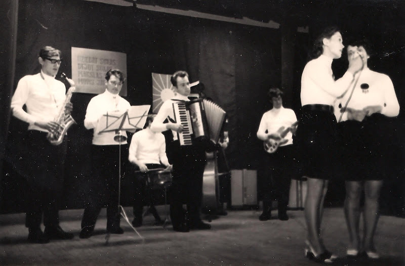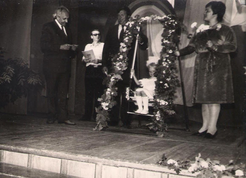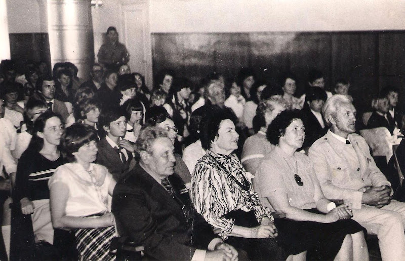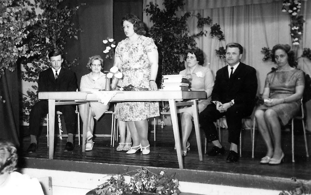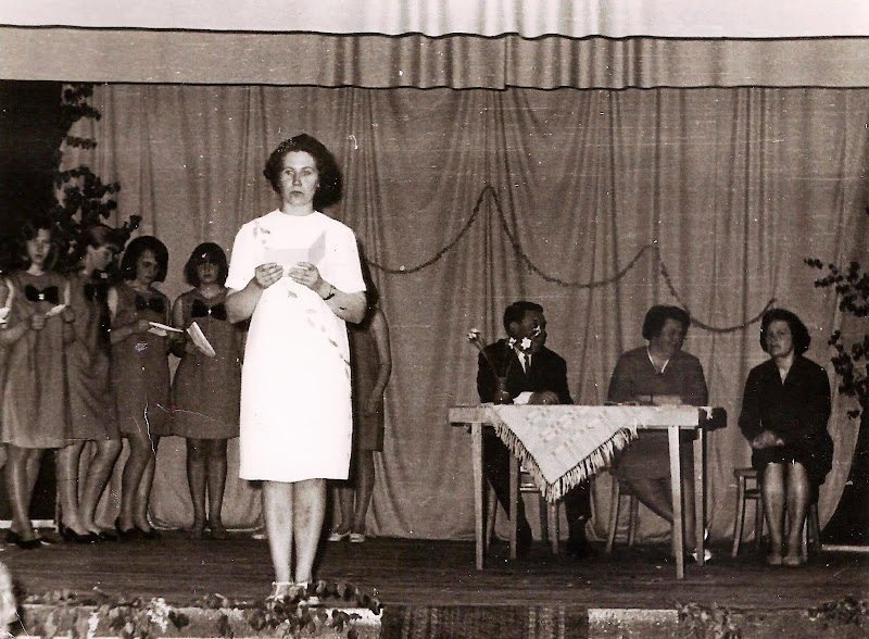 Pasākums tautas namā . Priekšplānā skolotāja Ilga Iskrova . 1960-tie vai 1970-tie gadi