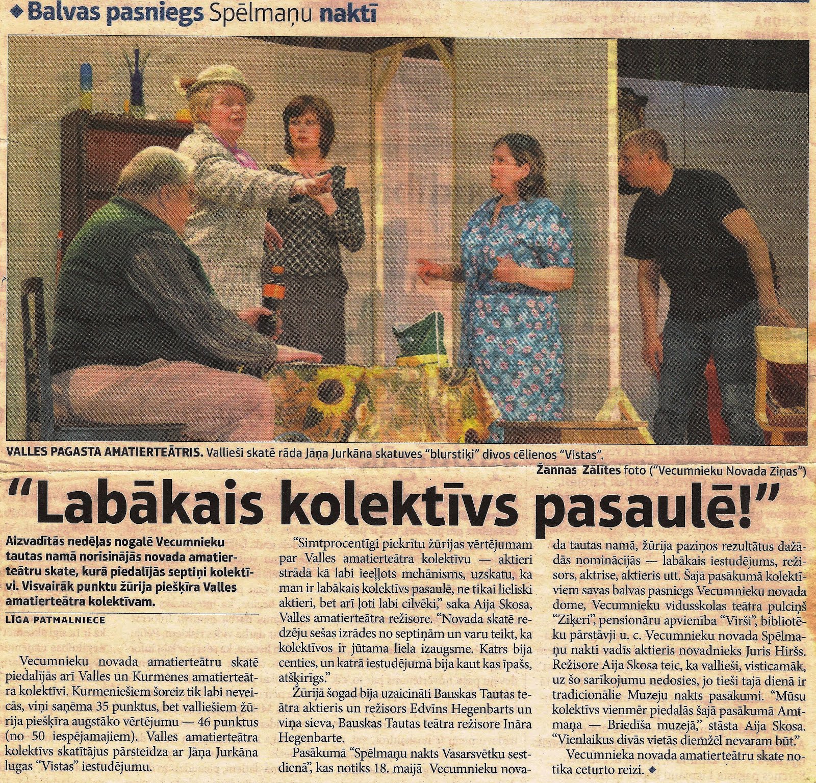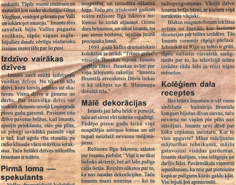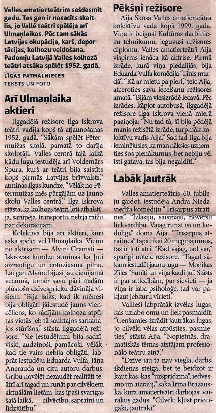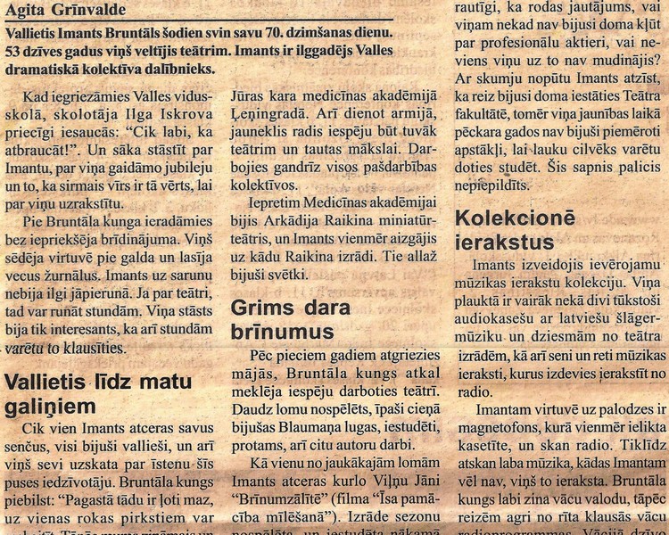 Raksts laikrakstā ,, Staburags '' 2001. gada 27. februārī ,, Pusgadsimts veltīts teātrim "