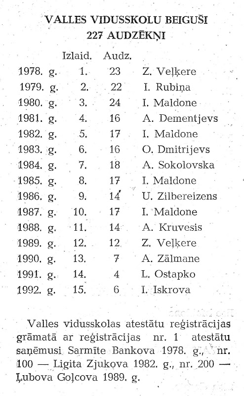 Valles vidusskolas auto klase 1978. g. (1979. gada 2. izlaiduma klase) - 2