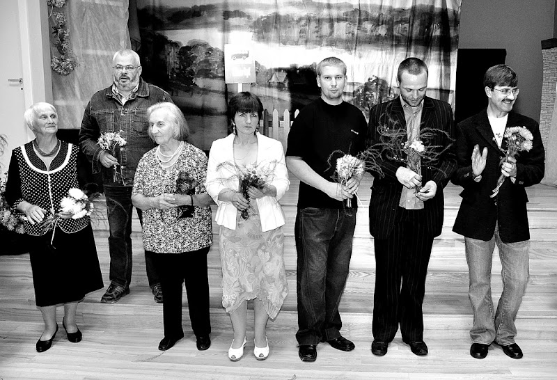 Zāles priekšā tika aicināti visi , kuri savulaik bijuši saistīti ar teātri