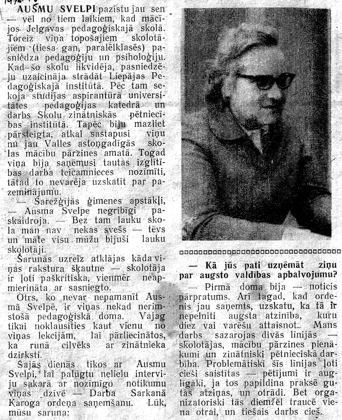 Skolotāja Ilga Iskrova - raksts no žurnāla ,, Skola un ģimene '' ( 1972. g. , Nr. 2. )