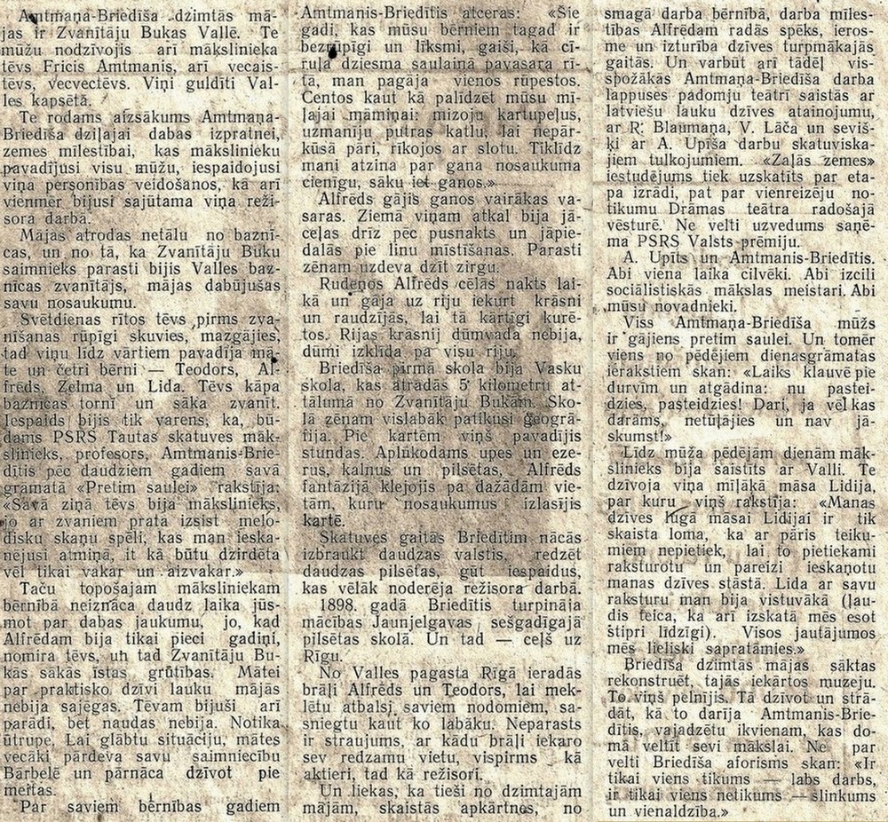 Teksts ņemts galvenokārt no Žannas Zālītes raksta 2012. gada augusta ,, Vecumnieku novada ziņās ”, kā arī papildināts ar dažiem faktiem no mammas pierakstiem.