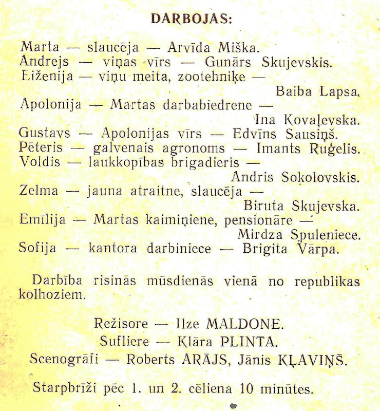 Pēc Rūdolfa Blaumaņa darba motīviem iestudētā luga ,, Brīnumzālīte " . 1970. gads